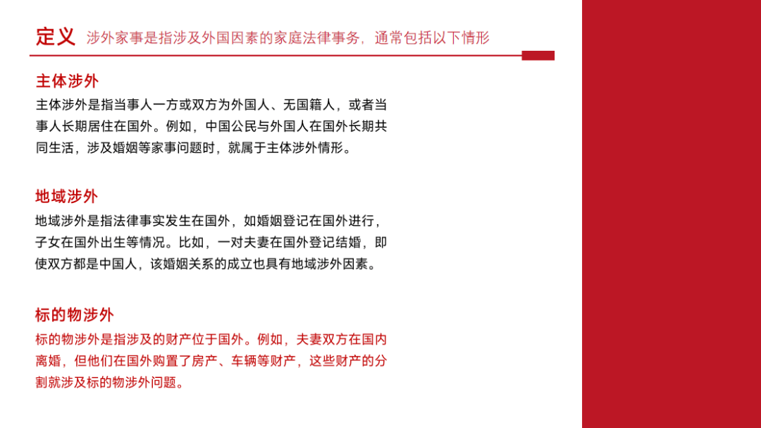 于洋律师认为,界定涉外家事的关键在于识别“外国因素”,具体可分为三类: